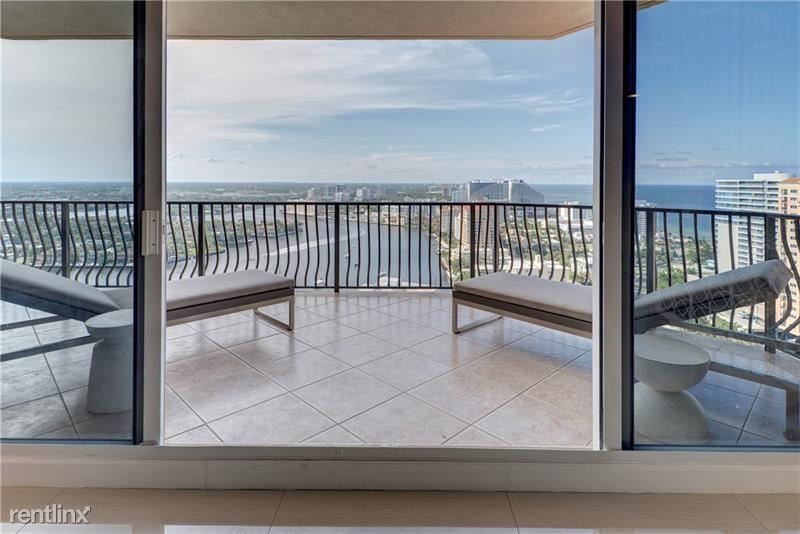 Lux living high above Fort Lauderdale with stunning views of Seven Isles, the Intracoastal Waterway directly below and the sparkling Atlantic are yours in this north facing 27th floor condo in sought after Jackson Tower. Semi-private elevator opens to your own private foyer then immediately into the gorgeous condo with bright, sophisticated furnishings and artwork. Open kitchen / living / dining room open out to a deep and wide balcony perfect for lounging, entertaining or simply watching the sun rise or set. Two bedrooms each open to balcony and have en suite baths. The location doesn't get any better with easy walking access to the beach and Las Olas Blvd. Available elegantly furnished on annual lease. Will be available for showing by Wednesday 6/21.